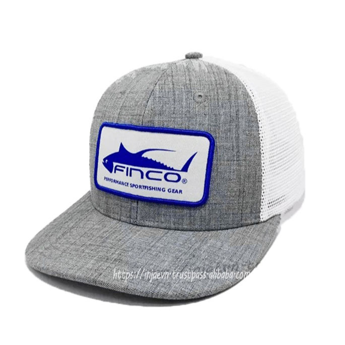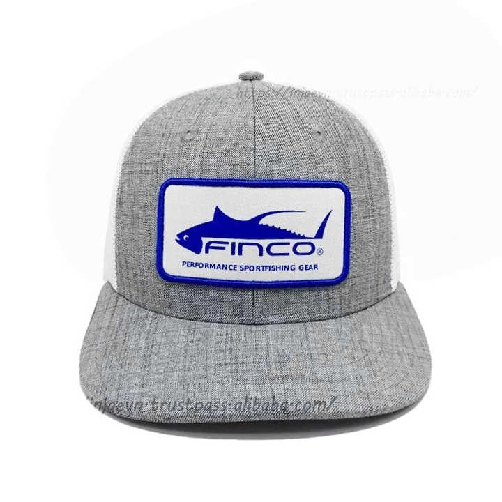 หมวกทรัคเกอร์ผ้าฝ้าย100%,หมวกปักลายโลโก้หมวกทรักเกอร์คุณภาพสูงพร้อมทุ่งหญ้าสีเทาในเวียดนาม