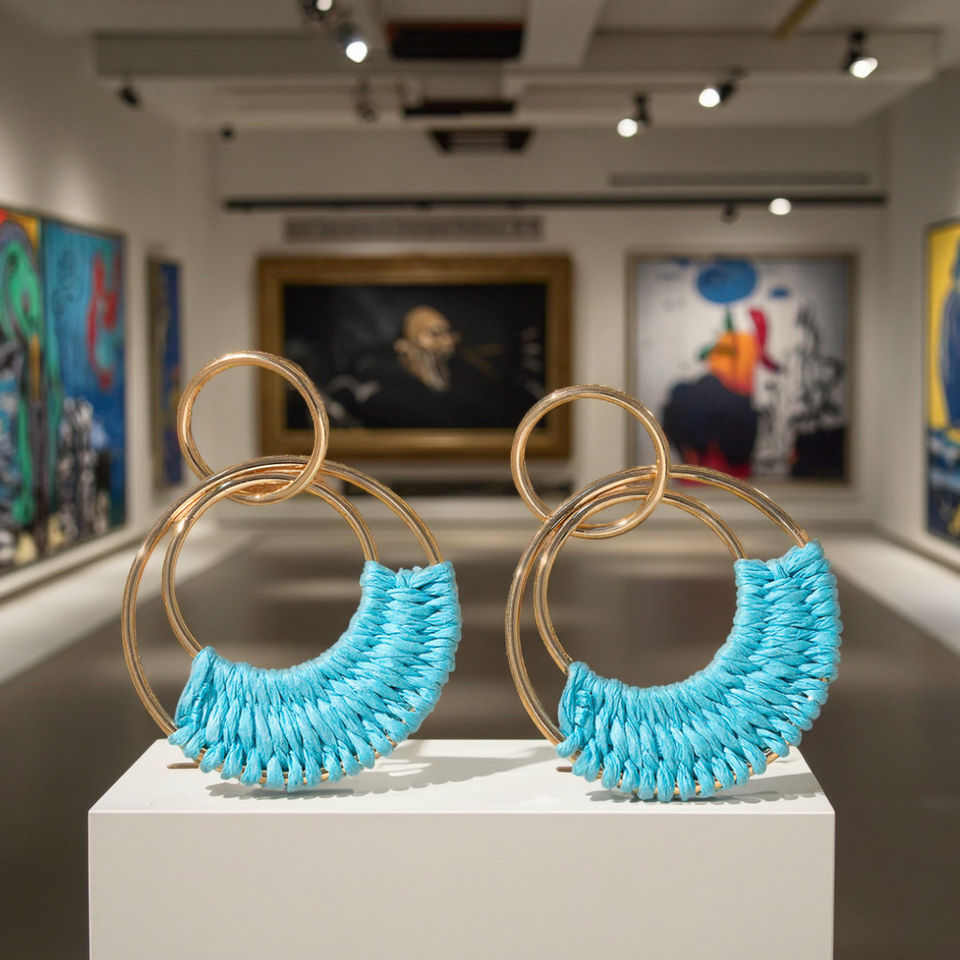 ต่างหูจี้โลหะผสมทรงเรขาคณิตสีสันสดใส ดีไซน์เก๋ไก๋ ทอมือ งานแฮนด์เมด สำหรับผู้หญิง รุ่น UIONEN 1010