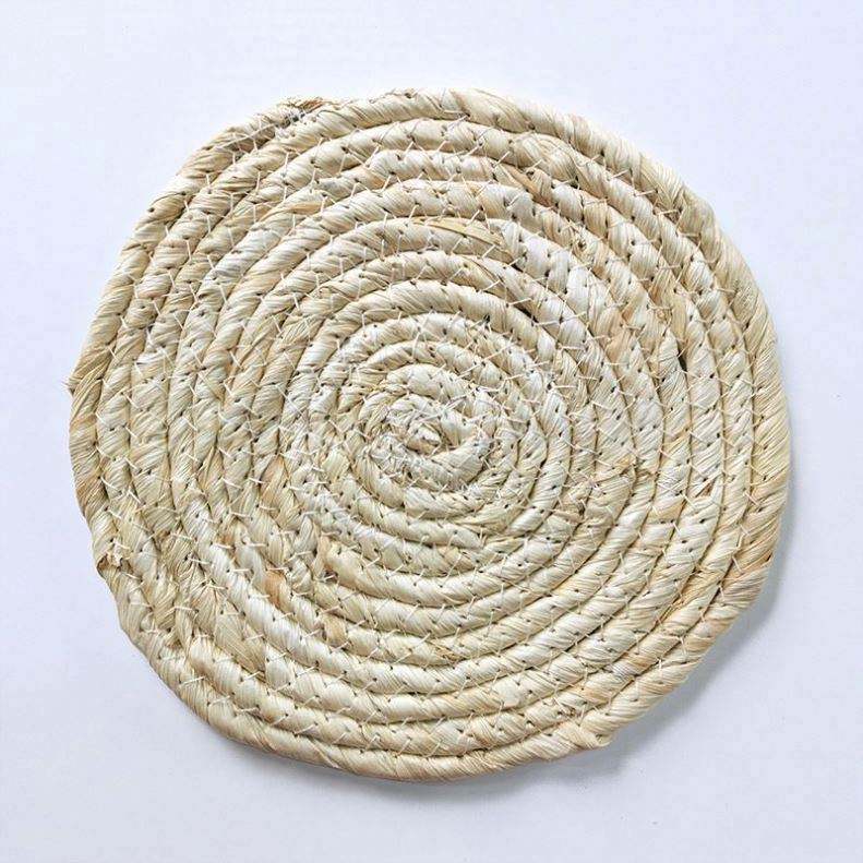 ชุดเสื่อรองจานแบบถักทอแผ่นรองจานแบบกำหนดได้เองแผ่นรองจานหวายทรงกลมสีน้ำตาลกันความร้อนกันลื่น