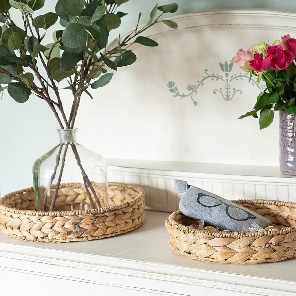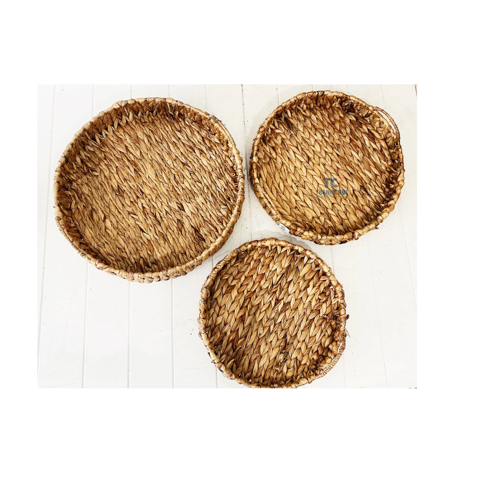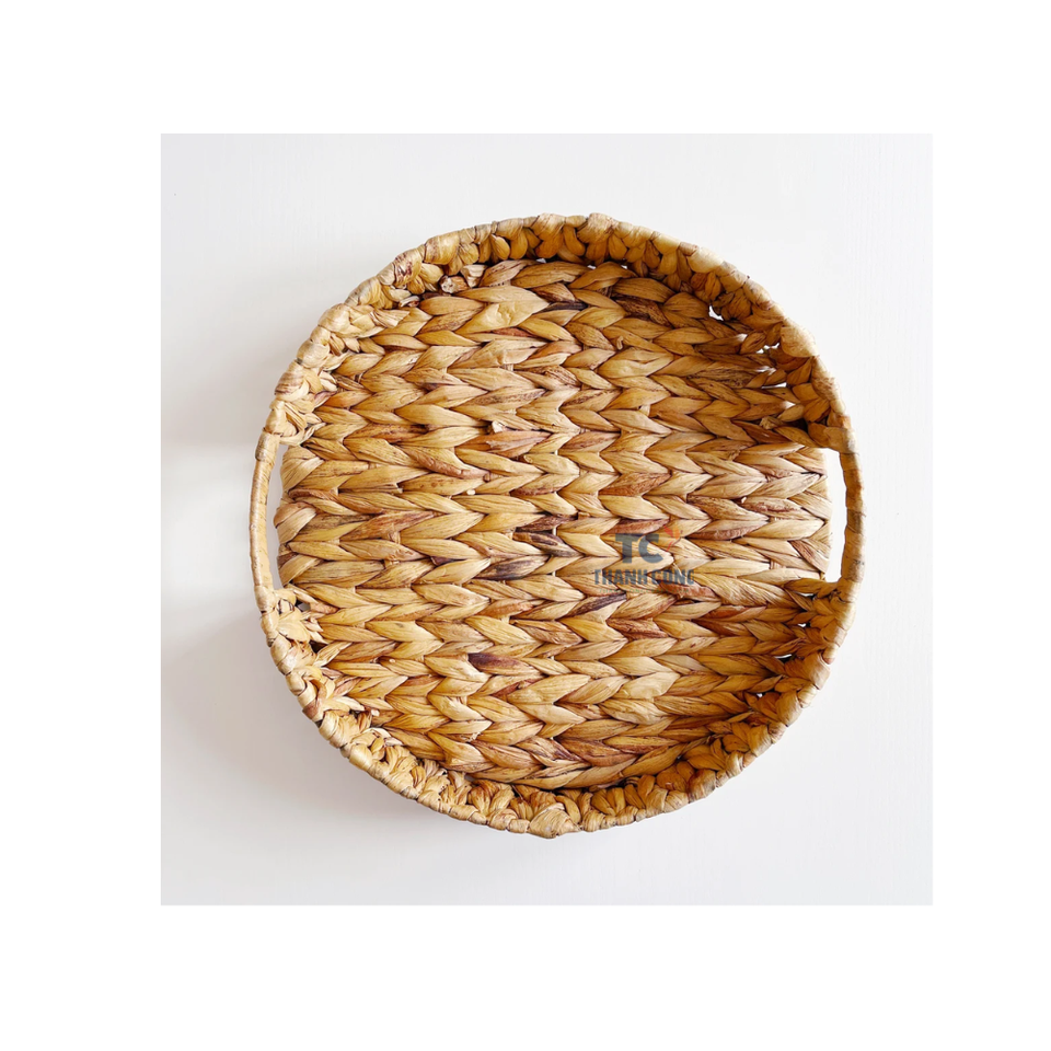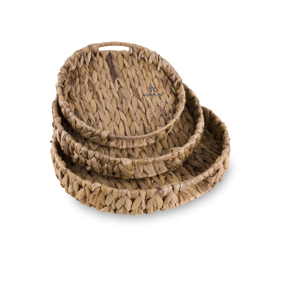 ตะกร้าหวายสานสำหรับใส่ขนมปังผักตบชวาธรรมชาติแบบชนบทถาดเสิร์ฟอาหารเช้าในเวียดนาม
