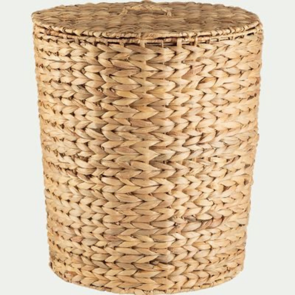 ตะกร้าหวายสานพร้อมฝาปิดสำหรับซักผ้าผ้าเช็ดตัวในห้องน้ำและที่เก็บของอเนกประสงค์