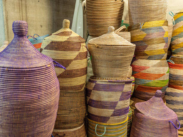 ตะกร้าสานจากหญ้าทะเลพร้อมพื้นผิวธรรมชาติสำหรับการจัดเก็บอย่างมีสไตล์และการจัดระเบียบบ้าน ตะกร้าตกแต่งทำมือสำหรับบ้านรักษ์โลก