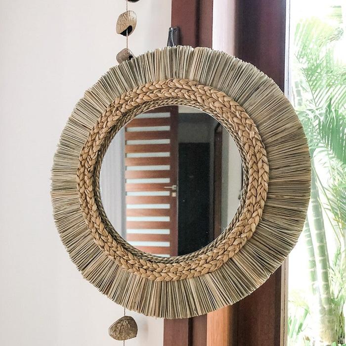 กระจกหวายสานลายโบฮีเมียน กระจกแขวนผนังตกแต่งบ้าน กระจกติดผนังตกแต่งบ้านสไตล์โมเดิร์น ผลิตในเวียดนาม ขายบน Amazon