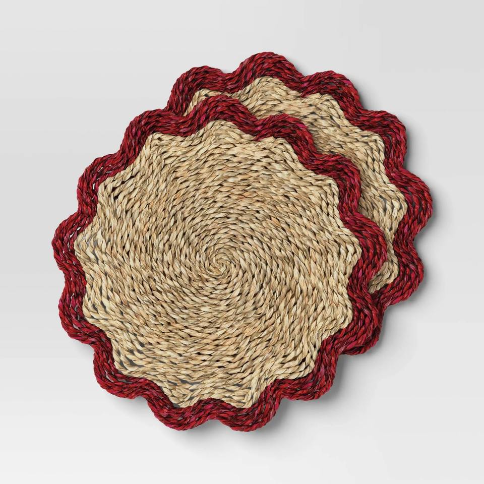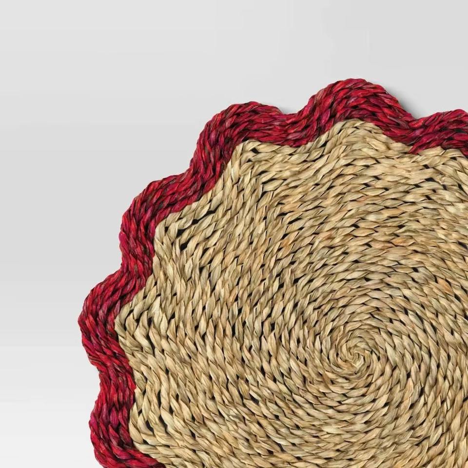 แผ่นรองจานหญ้าทะเลแบบทอพร้อมขอบสีแดงเป็นมิตรต่อสิ่งแวดล้อมสินค้าทำจากเวียดนามขายส่ง