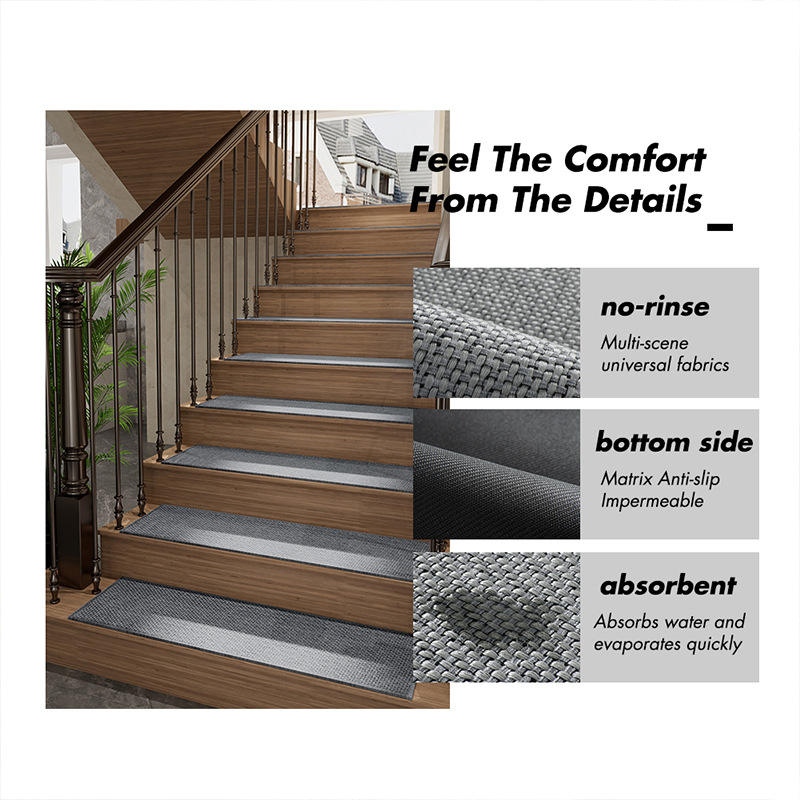 พรมปูบันไดแบบทอ รูปสี่เหลี่ยมผืนผ้า สีเทา กันลื่น ใช้ในบ้าน วัสดุทอสีพื้น