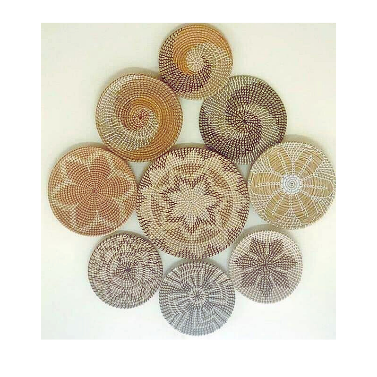 ชุดจานทอจากหญ้าทะเลตกแต่งผนังแบบแขวน