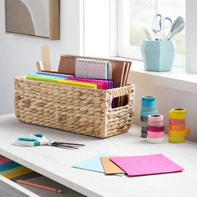 ชื่อ:กล่องสี่เหลี่ยมผืนผ้าผ้าทอผ้าใบบัว ขนาด: L12 x W6 x H6 นิ้ว