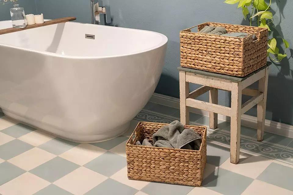 ตะกร้าใส่ของผักตบชวาสานพร้อมด้ามจับตะกร้าหญ้าทะเลสำหรับห้องครัวห้องนั่งเล่นสำนักงานห้องน้ำ