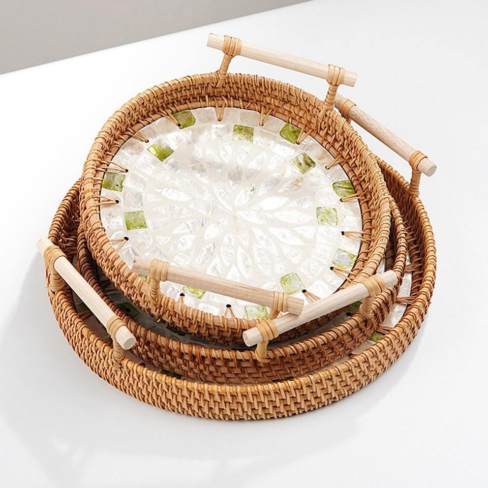 ถาดหวายสานพร้อมแม่ของไข่มุกฝังขนาดและรูปแบบต่างๆชุดถาดเสิร์ฟไม้ถูพื้น