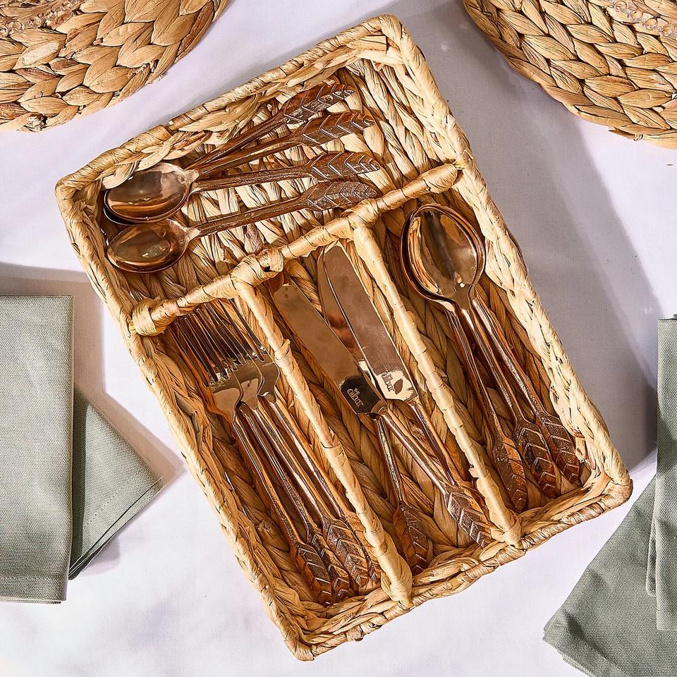 ถาดใส่ช้อนส้อมทำจากผักตบชวา สำหรับจัดระเบียบช้อนส้อม แบ่งช่องใส่