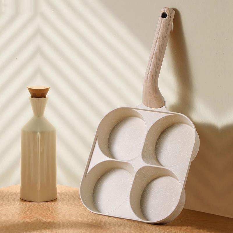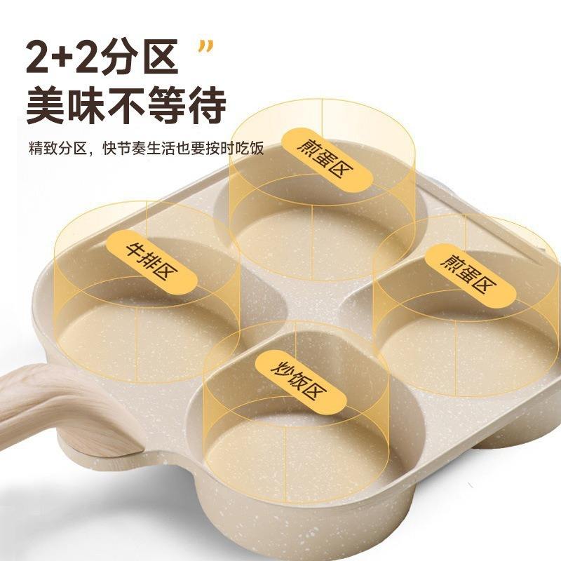 กระทะทอดไข่ 4 หลุม ทรงสี่เหลี่ยม ไม่ติดกระทะ หินไมแฟน สำหรับอาหารเช้า พกพาสะดวก ล้างมือได้