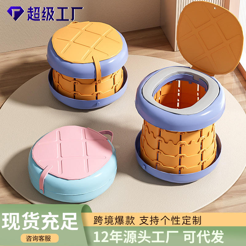 ว้าว โถสุขภัณฑ์พกพาสำหรับเด็กแบบพับได้ สำหรับเด็กอายุ 2-4 ปี พร้อมดีไซน์อเนกประสงค์ สีฟ้าเหลือง