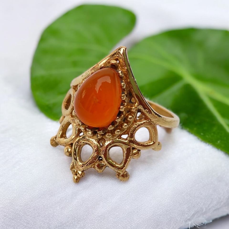 14k Gold Plated 925 Sterling Silver Carnelian Gemstone Ring