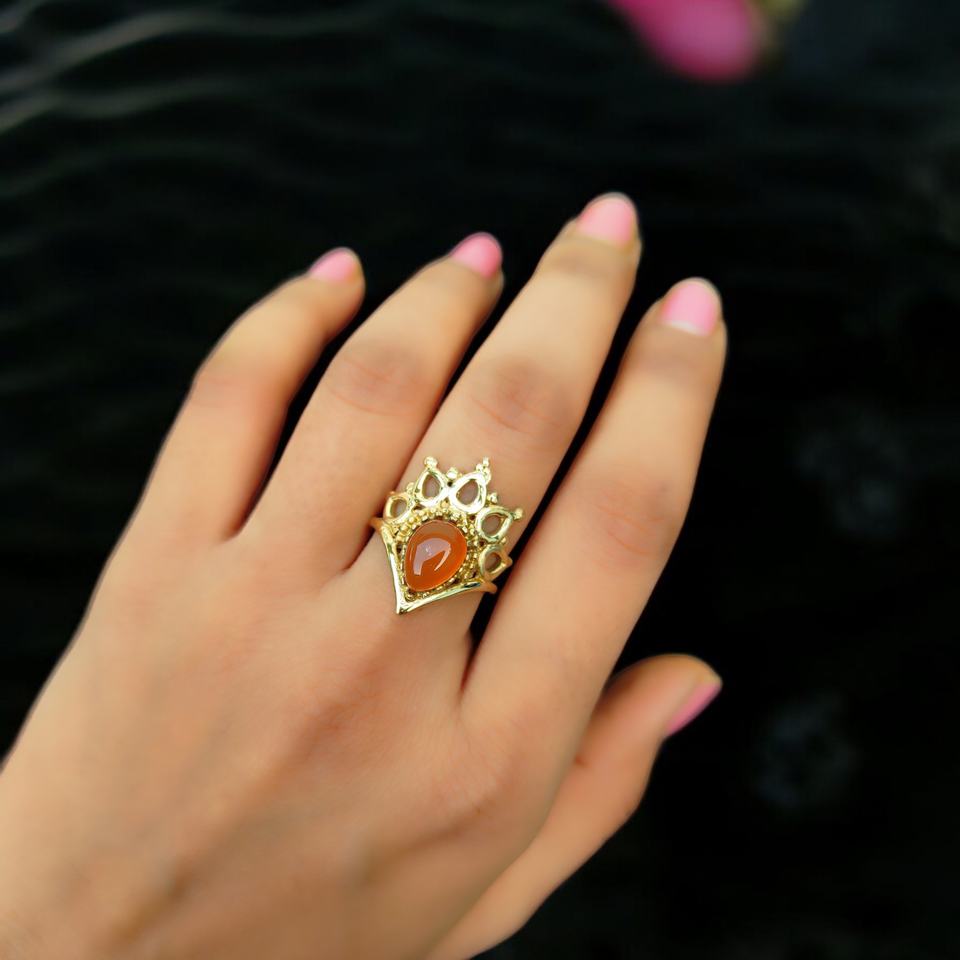 Product name:14k Gold Plated 925 Sterling Silver Carnelian Gemstone Ring