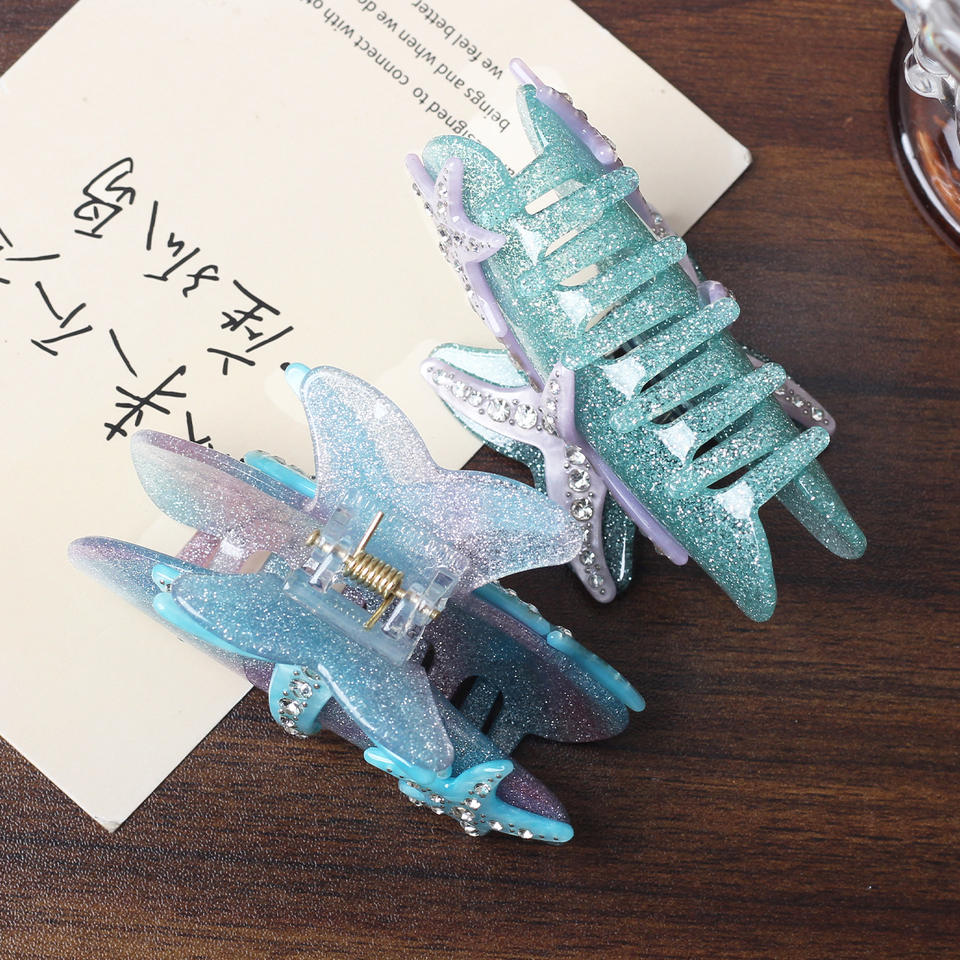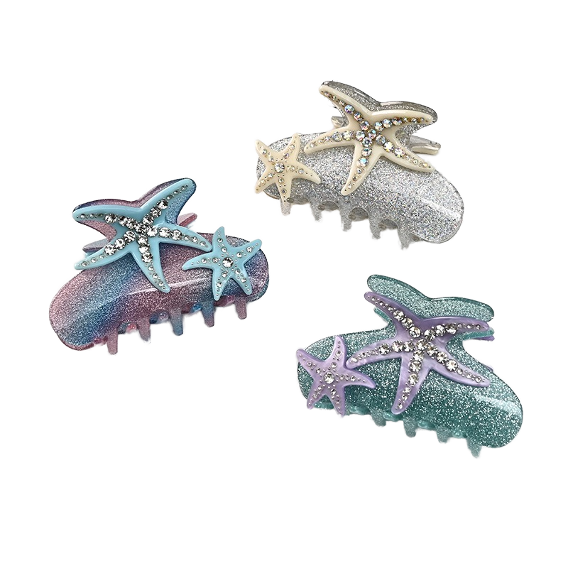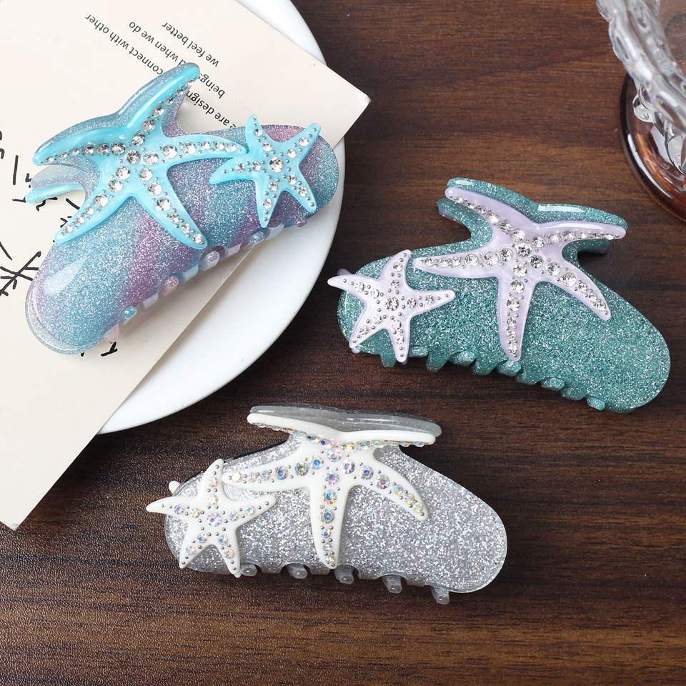 Wow Sheila Starfish Shark Hair Claw Premium Diamond Acrylic Hair Clip Cute Elegant Party Accessory for Girls Ocean Light Plastic