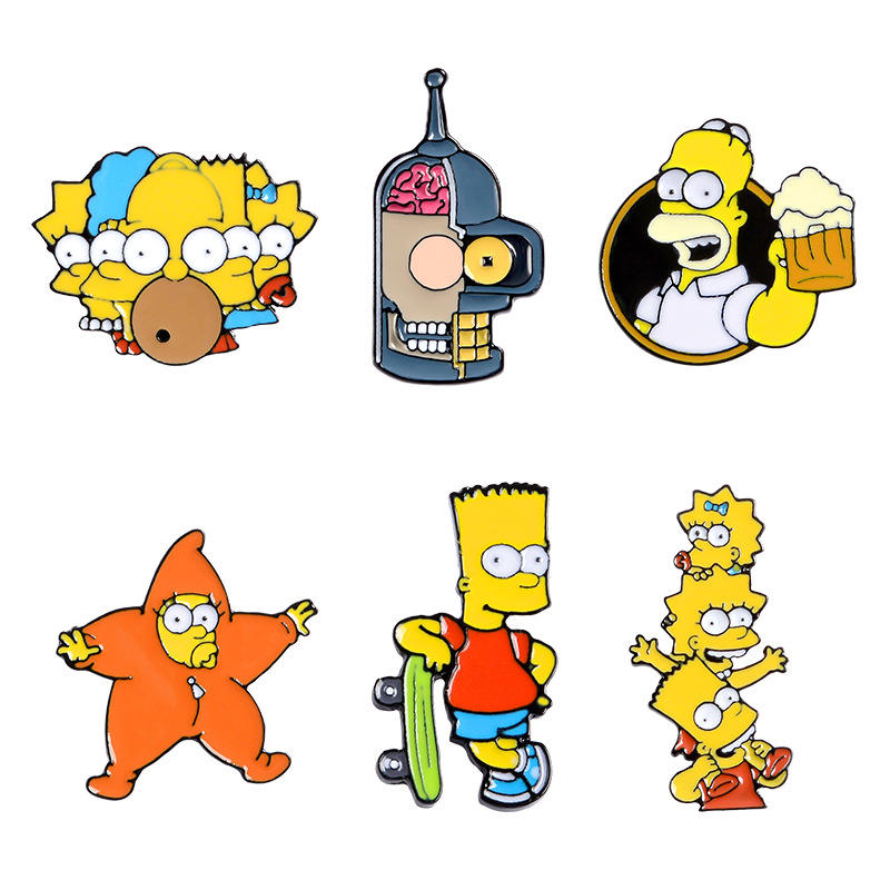 Wowei Wholesale Custom Metal Cute Cartoon Anime Simpsons Funny Personality Badges Lapel Pins for Clothes