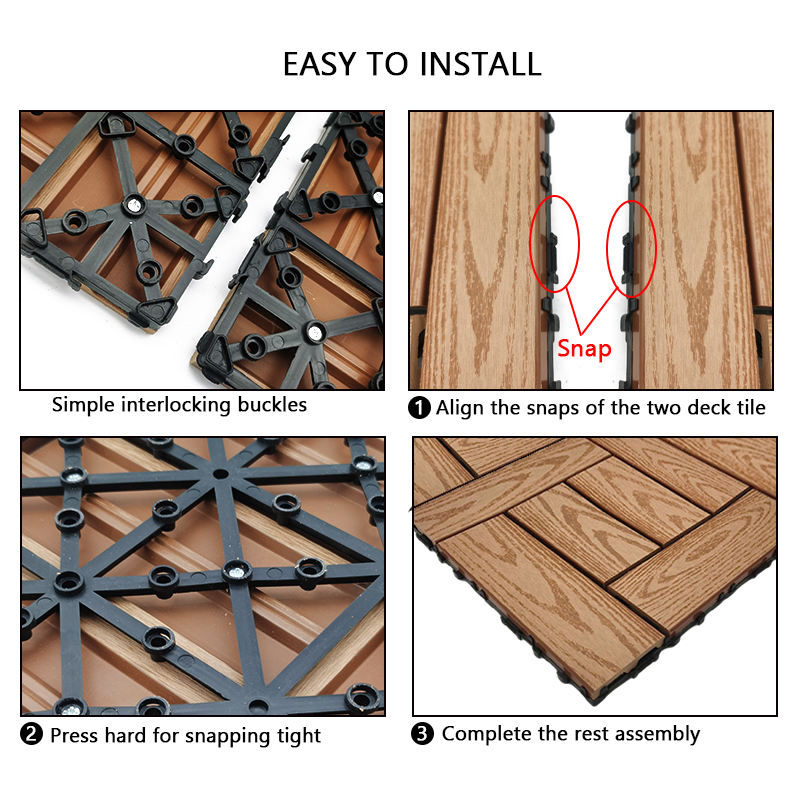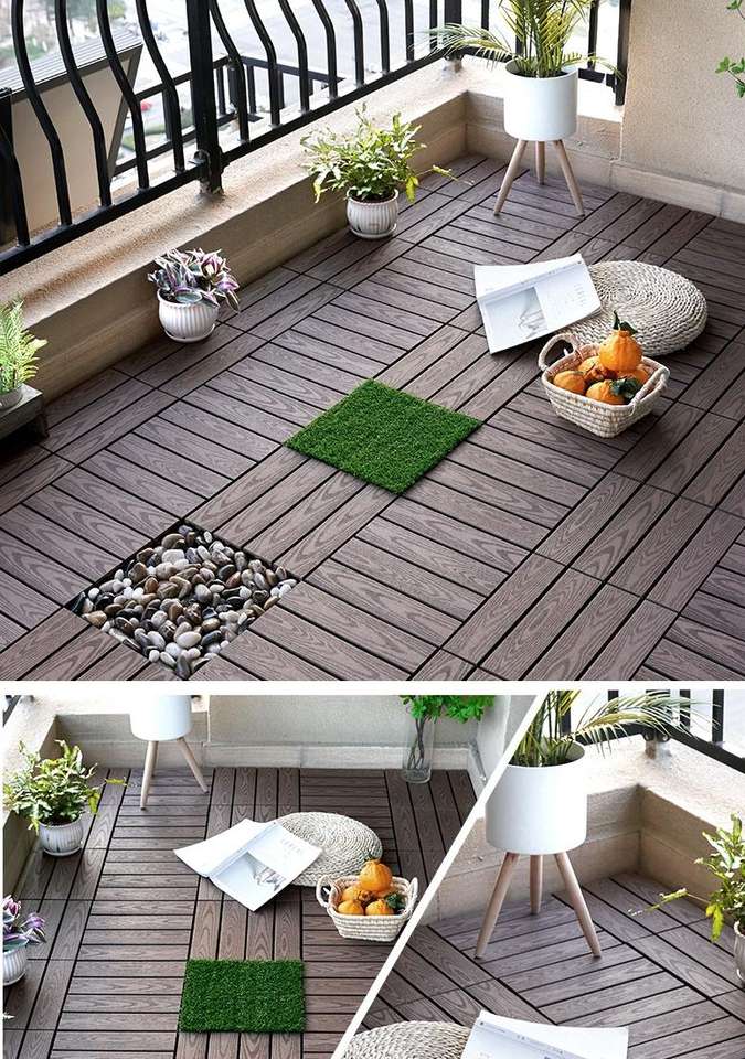 กระเบื้องพื้นระเบียง WPC สำหรับกลางแจ้ง ติดตั้งง่าย เหมาะสำหรับหลังคาสวนครัว แบบประกบกันได้ ทำจากวัสดุคอมโพสิต WPC