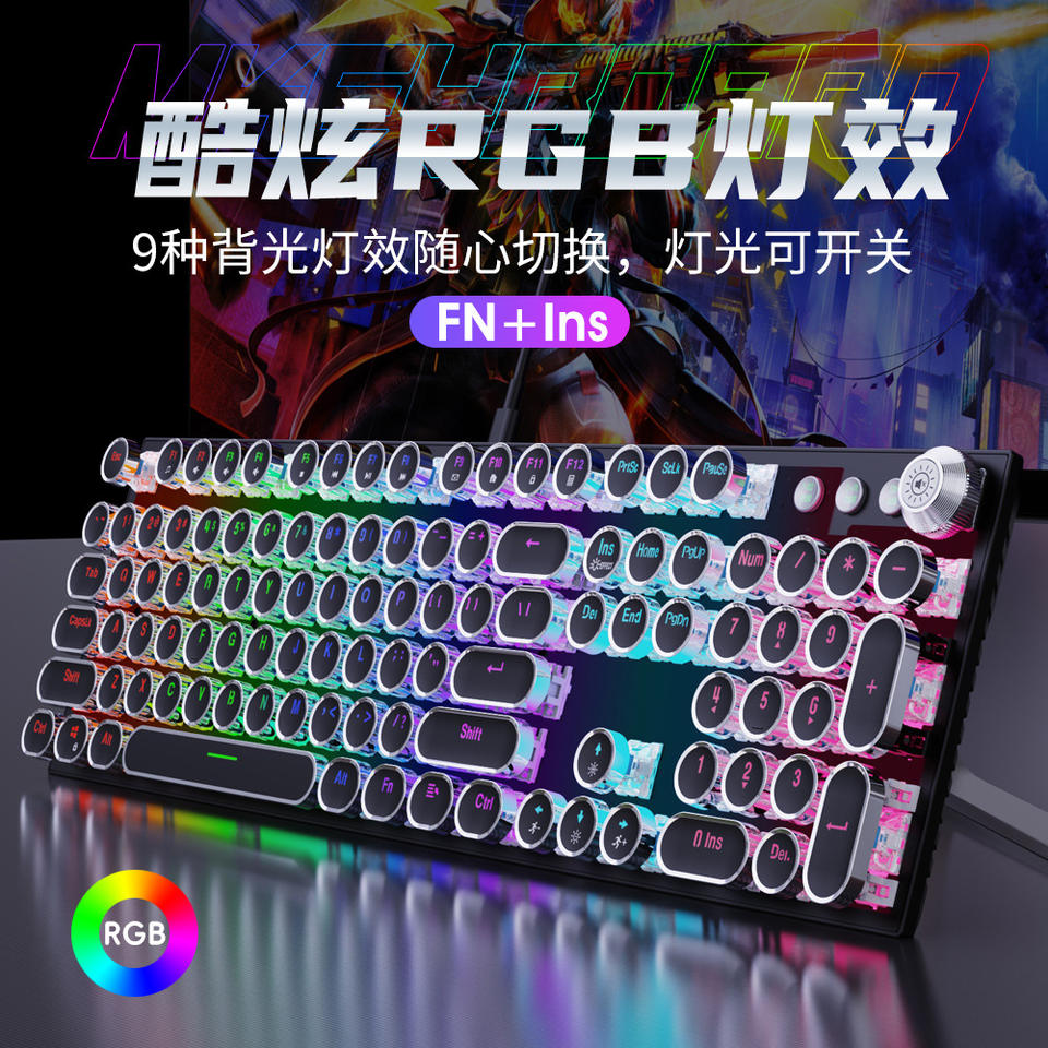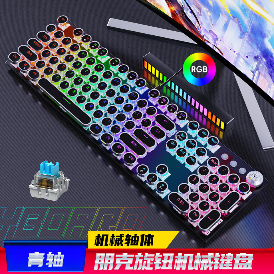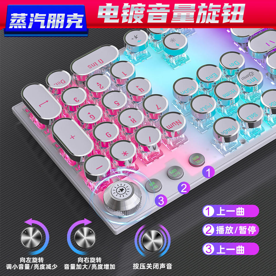 คีย์บอร์ดเกมมิ่ง Wrangler Steampunk แบบกลไก ปุ่มกลมสไตล์เรโทร โลหะ แบบมีสาย ไฟผสม ตั้งโปรแกรมได้