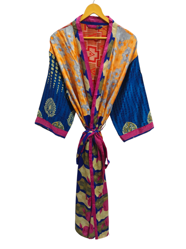 ชุดเดรสสำหรับเจ้าสาวเสื้อคลุมส่าหรีสไตล์อินเดียเสื้อคลุมสำหรับเป็นของขวัญชุดปาร์ตี้ชายหาดชุดกิโมโนผ้าไหมส่าหรีพิมพ์ลายอินเดีย