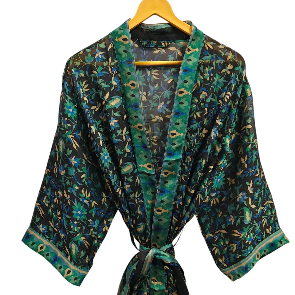 ชุดเดรสสำหรับเจ้าสาวเสื้อคลุมส่าหรีสไตล์อินเดียเสื้อคลุมสำหรับเป็นของขวัญชุดปาร์ตี้ชายหาดชุดกิโมโนผ้าไหมส่าหรีพิมพ์ลายอินเดีย