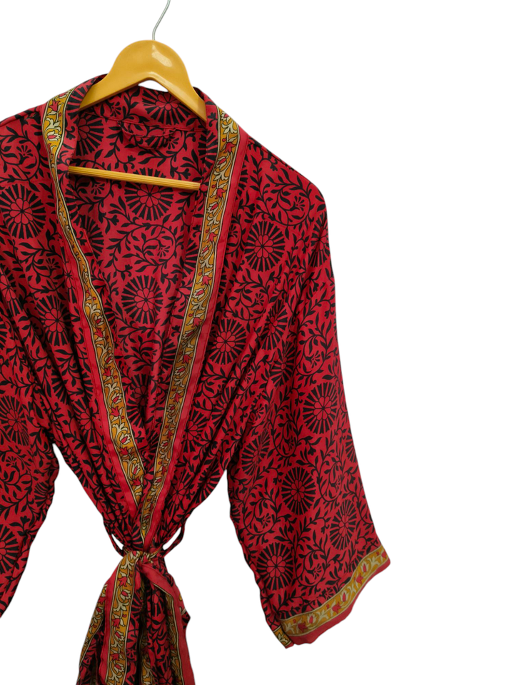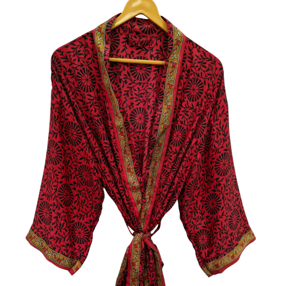 ชุดเดรสสำหรับเจ้าสาวเสื้อคลุมส่าหรีสไตล์อินเดียเสื้อคลุมสำหรับเป็นของขวัญชุดปาร์ตี้ชายหาดชุดกิโมโนผ้าไหมส่าหรีพิมพ์ลายอินเดีย
