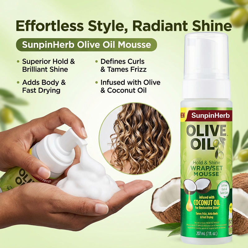 มูสโฟมจัดแต่งทรงผมผสมน้ำมันมะกอกและน้ำมันมะพร้าว ช่วยจัดแต่งทรงผมให้ดูเป็นลอนสวย ควบคุมผมชี้ฟู
