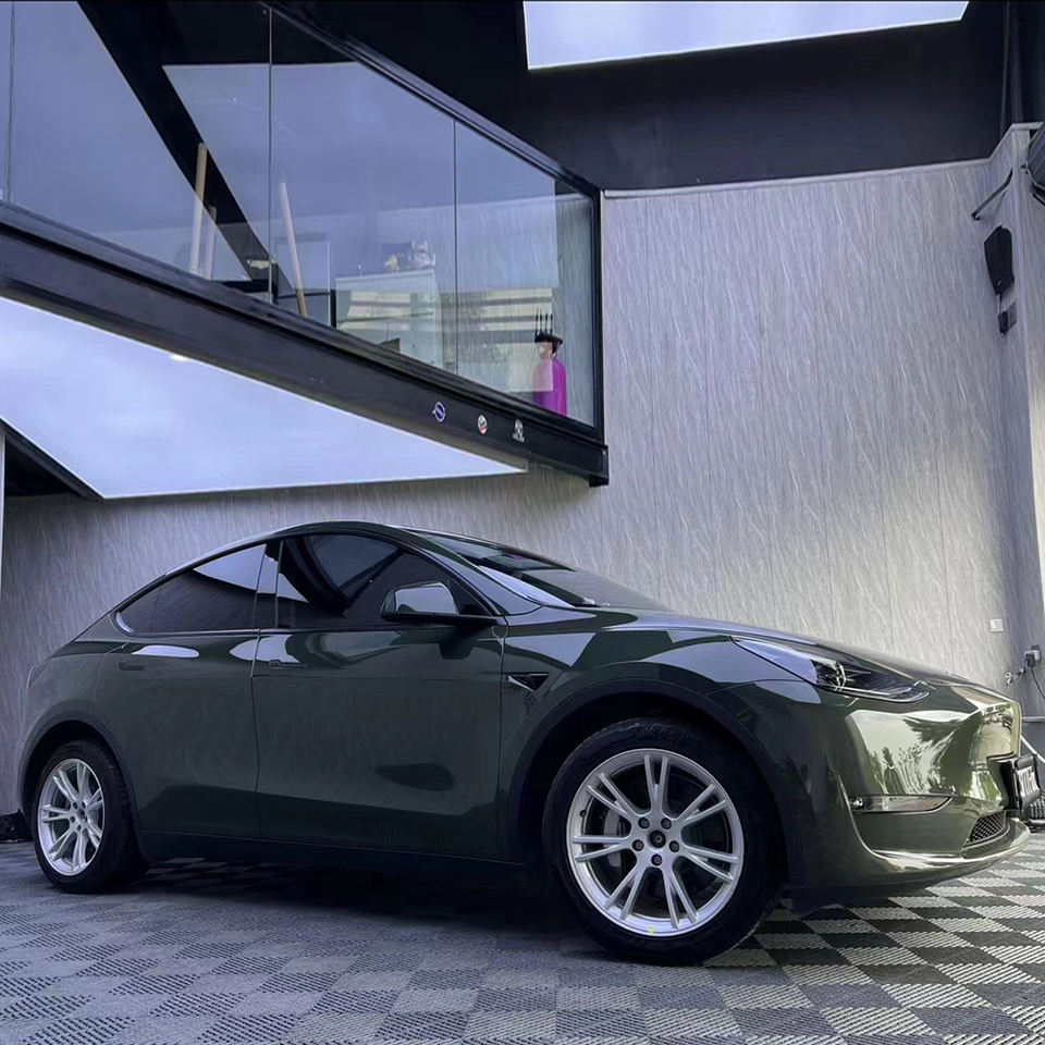 ฟิล์มพีวีซีไวนิลคริสตัลสีดำมะกอก1.52*17ม. เคลือบเงามันวาวสำหรับตกแต่งร่างกายเอฟเฟกต์เปลี่ยนสีได้