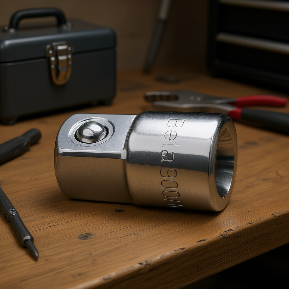 ประแจพร้อมข้อต่อสี่เหลี่ยมตัวเมียขนาด 1/4 นิ้ว และข้อต่อตัวผู้ชุบโครเมียมขนาด 3/8 นิ้ว