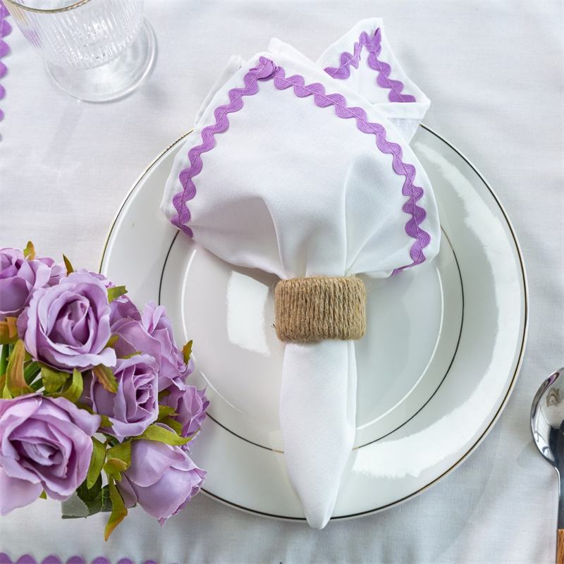 ผ้าเช็ดปากผ้าฝ้ายผ้าลินินปักขอบหยักหยักแบบไม่ยับดูแลง่ายสำหรับการวางแผนงานปาร์ตี้ที่ไม่ยุ่งยาก