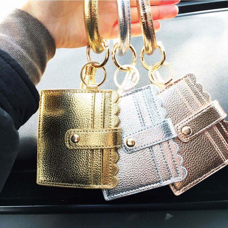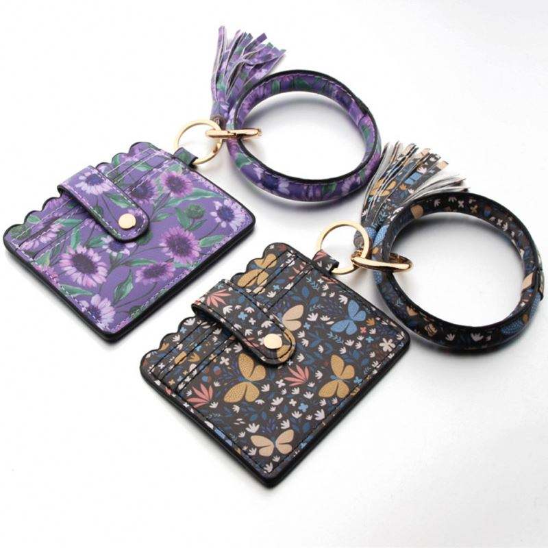 Wristlet Bracelet Card Holder, Purse Multi Function Key Ring Bangle Wallet Leopard Bead Tassel Key Chains/