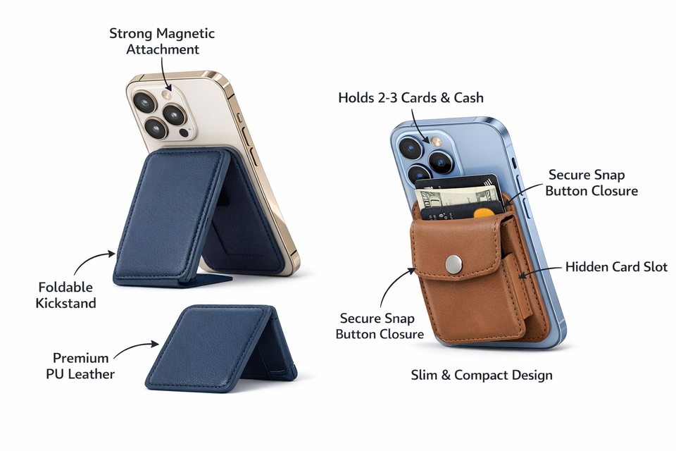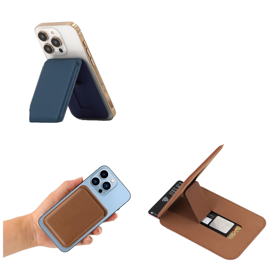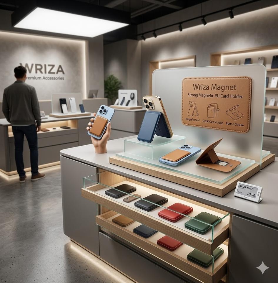 กระเป๋าใส่โทรศัพท์แม่เหล็กแรงสูง Wriza Strong Magnetic MagSafe ทำจากหนัง PU พร้อมช่องใส่บัตร มีขาตั้ง และปุ่มล็อคเพื่อความปลอดภัยสำหรับ iPhone