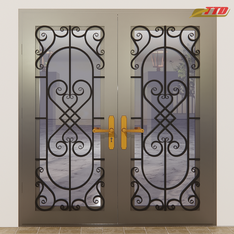ราวระเบียงเหล็กดัดที่ช่วยเสริมประตูหลักที่หรูหราและการตกแต่งดีไซน์หน้าต่างจากผู้จำหน่ายเวียดนาม