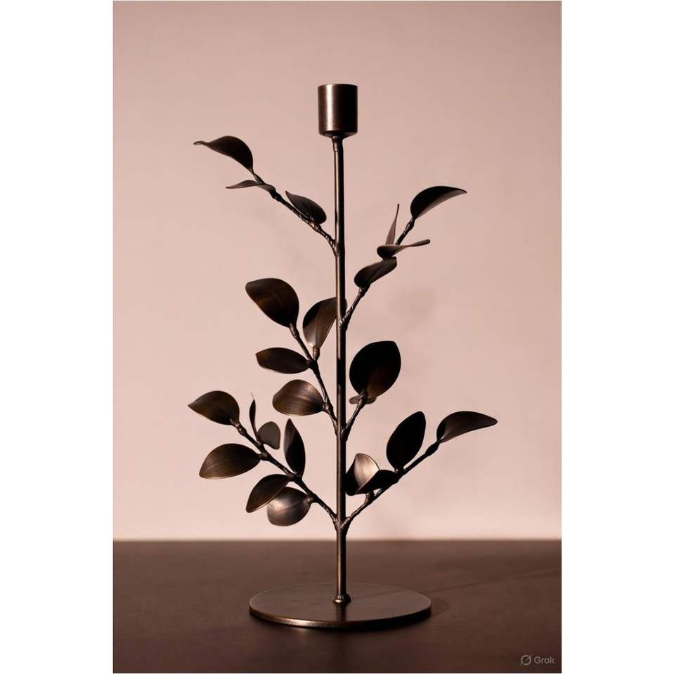 เชิงเทียนเหล็กดัดลายพฤกษศาสตร์ | เชิงเทียนทองสัมฤทธิ์สไตล์บ้านไร่แบบชนบท ดีไซน์ใบไม้ งานฝีมือตีขึ้นรูปด้วยมือ