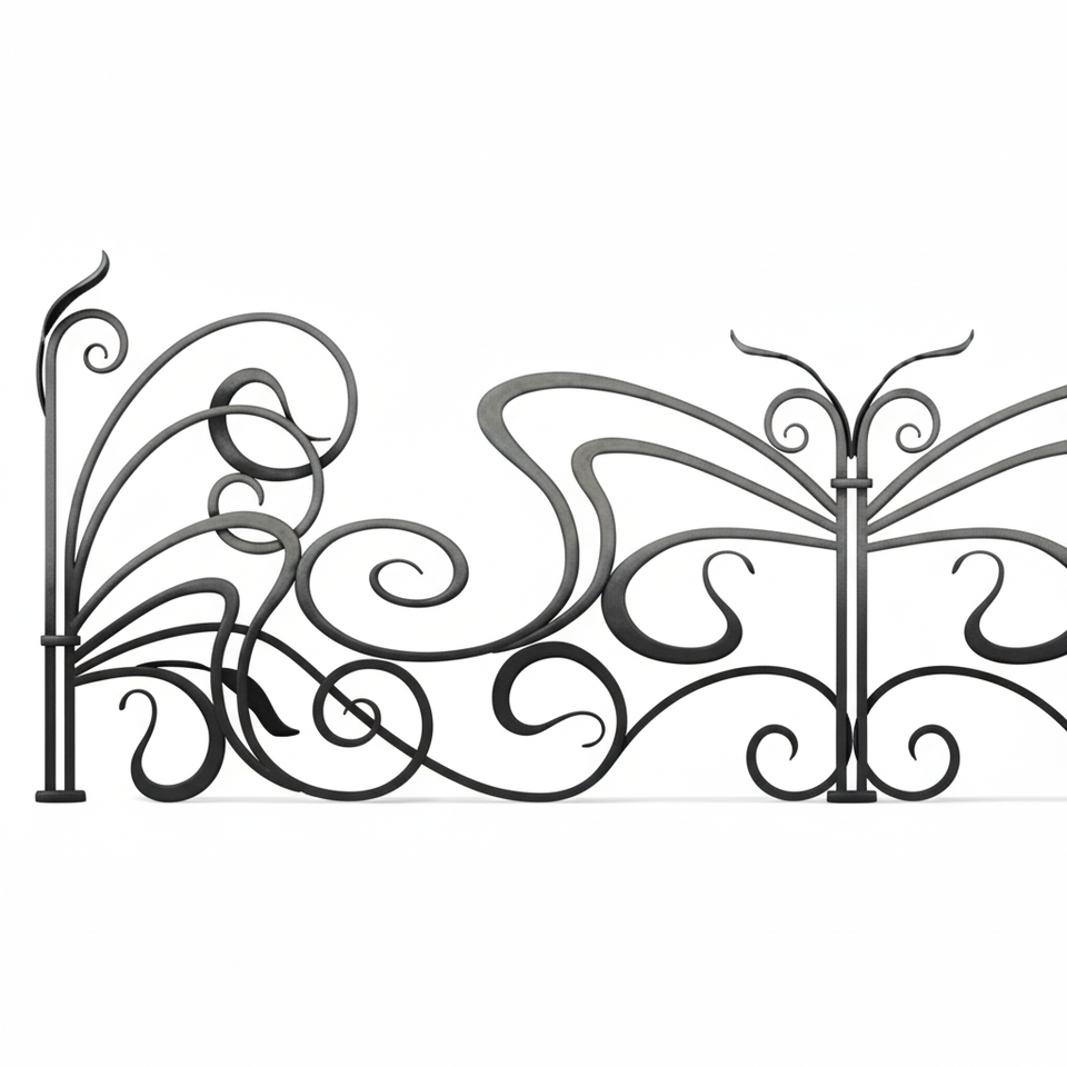 ส่วนประกอบการตกแต่งประตูเหล็กดัดทิ้งองค์ประกอบปลอมแปลงสําหรับราวบันไดรั้วสายเคเบิลกลางแจ้งราวบันไดสายเคเบิลสีดํา