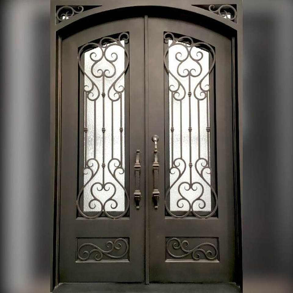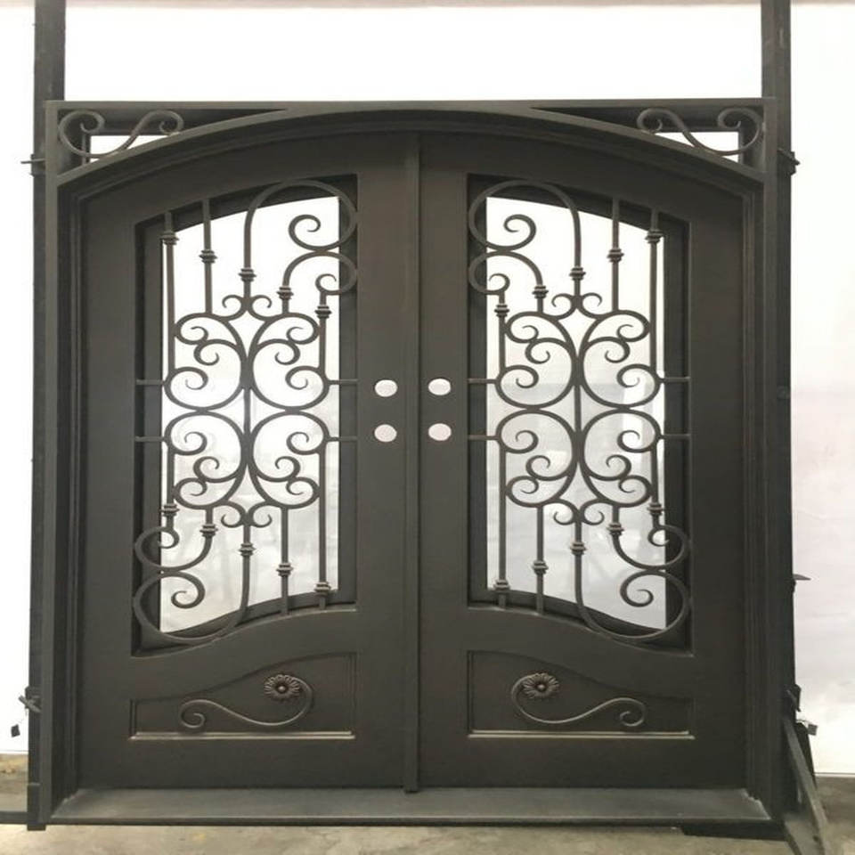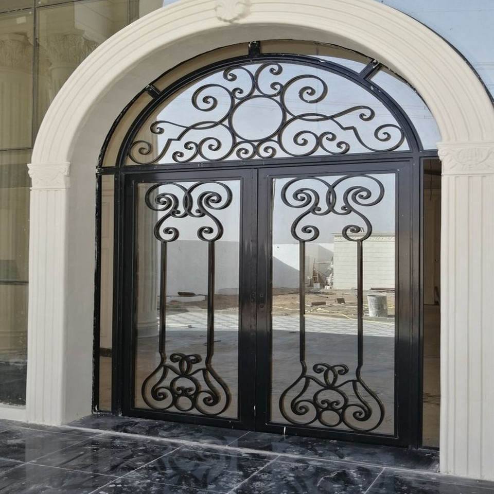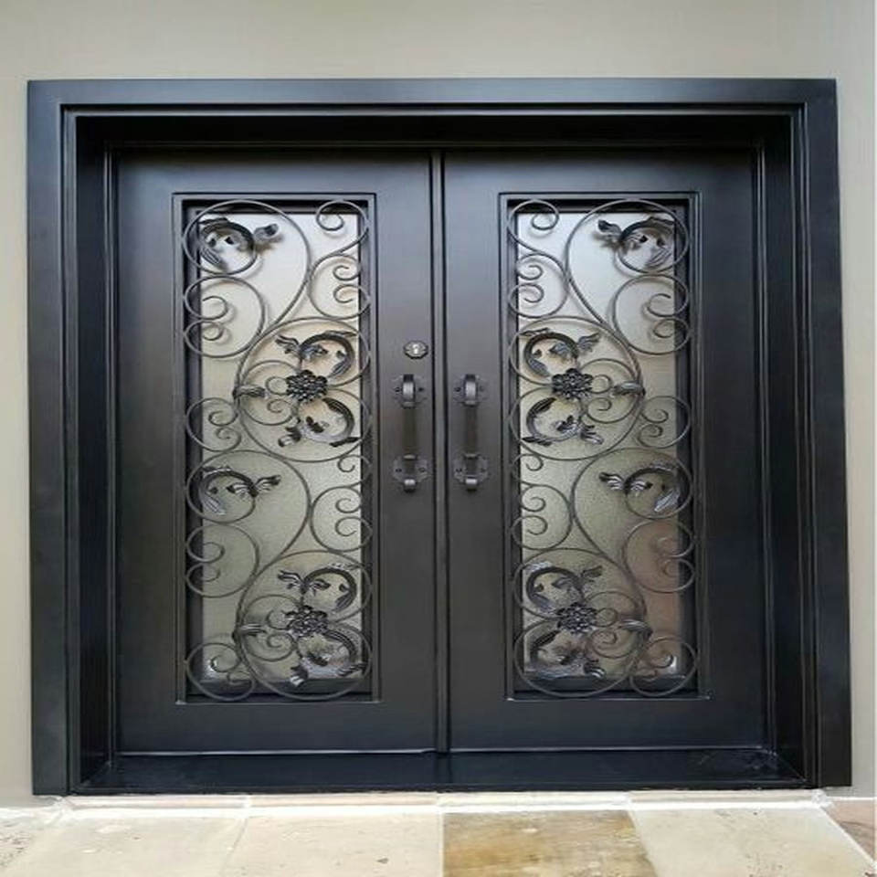 ประตูเหล็กดัดสำหรับบ้านการออกแบบทางเข้าด้านหน้าด้วยโลหะประตูคู่สำหรับโครงการสวนหรือในร่ม