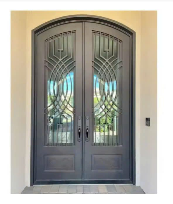ภาพออกแบบประตูทางเข้าเหล็กดัดสำหรับบ้านสมัยใหม่และคลาสสิกที่ผลิตโดยผู้ผลิตประตูที่เชื่อถือได้โดยใช้วัสดุคุณภาพสูง