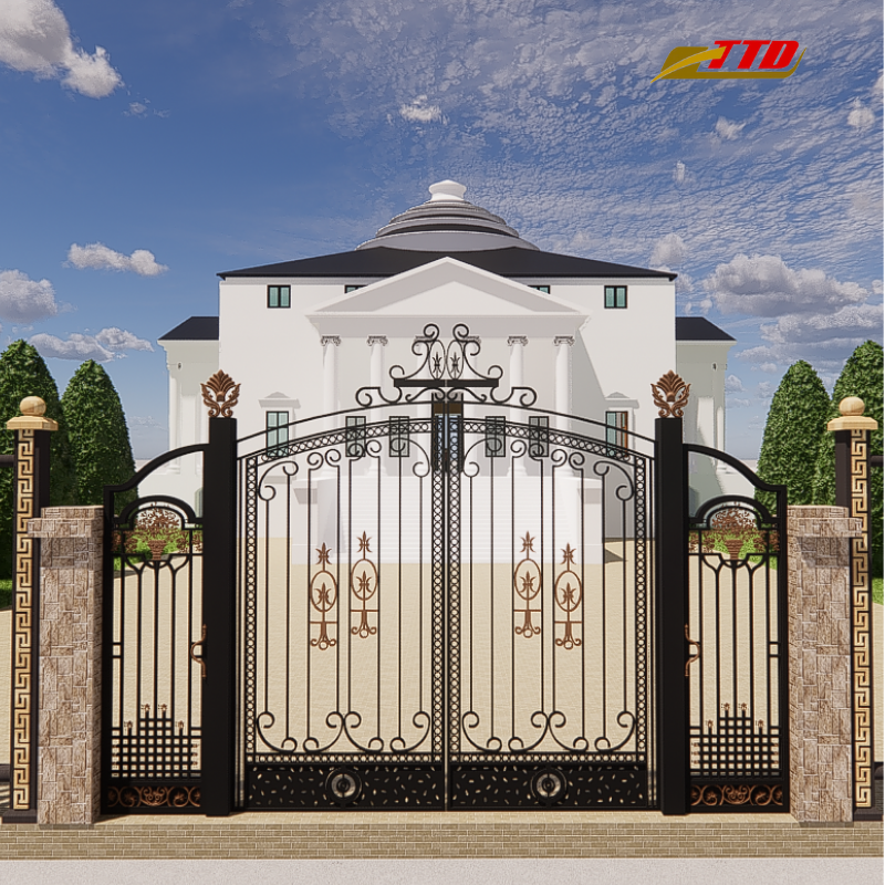 ประตูเหล็กดัดพร้อมแถบเลื่อนตกแต่งออกแบบสำหรับทางเข้าหลักที่ผลิตในเวียดนามโดยใช้วัสดุโลหะท้องถิ่น100เปอร์เซ็นต์