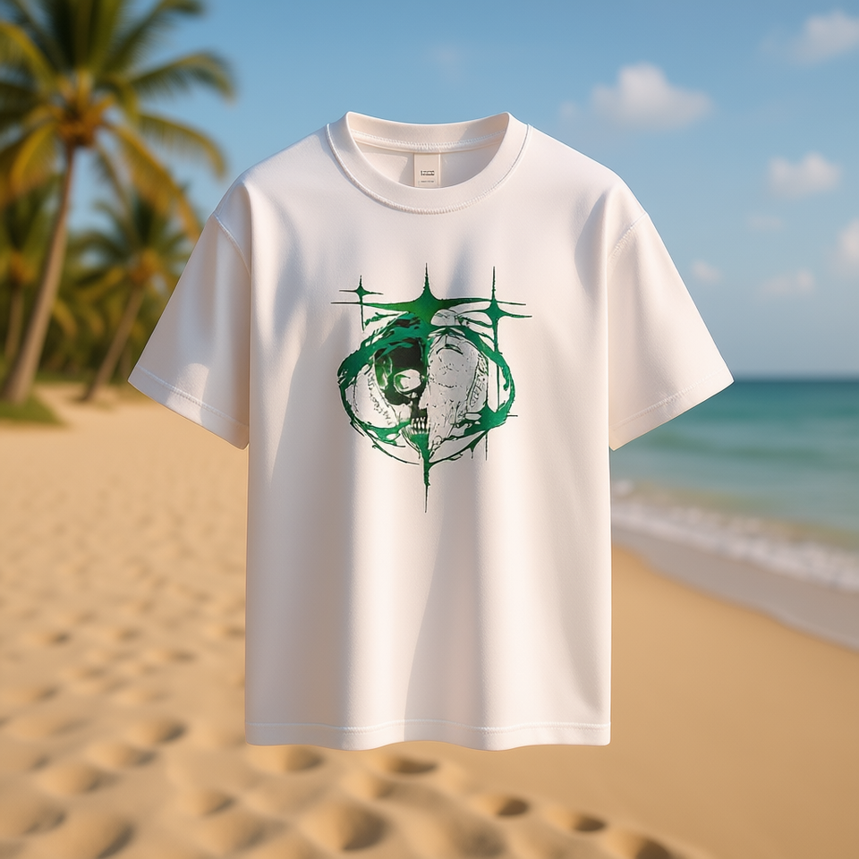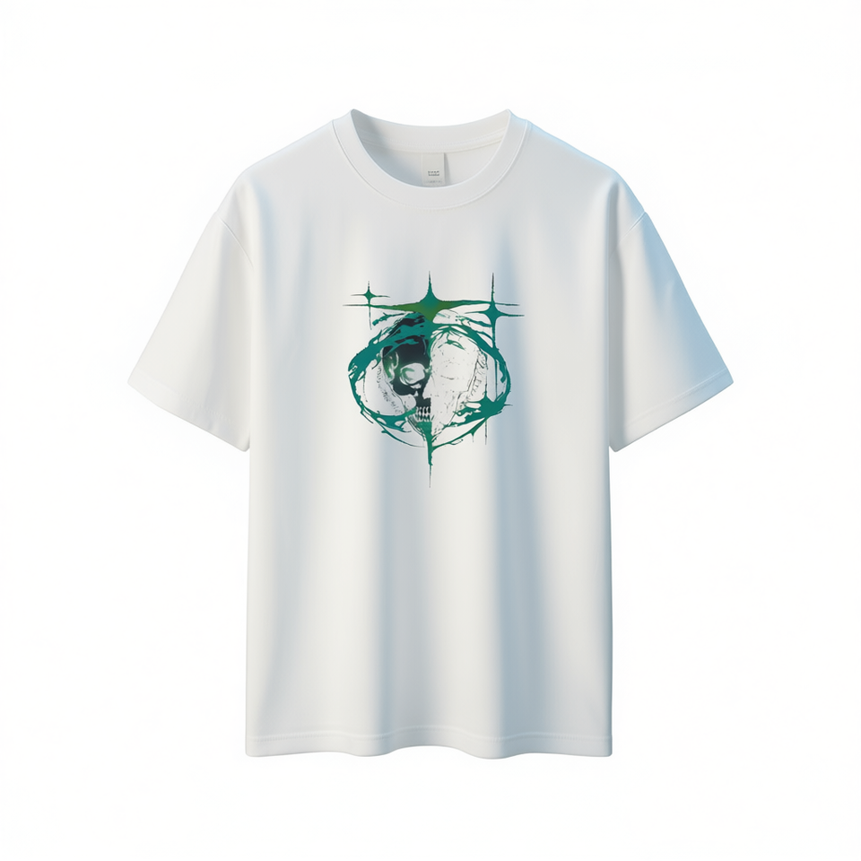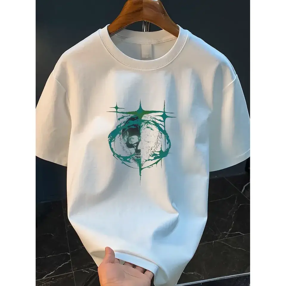 เสื้อยืดผู้ชาย Wu Jianzhan ลายหัวกะโหลก แขนสั้น ทรงปกติ ผ้าฝ้ายเจอร์ซีย์ 100% พิมพ์ลายสกรีน โลโก้ด้านหน้า สไตล์ลำลอง
