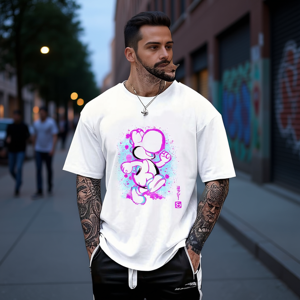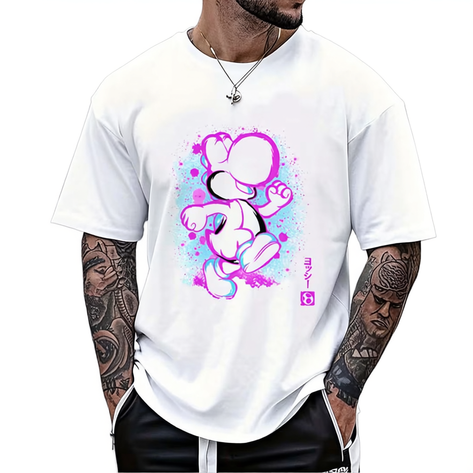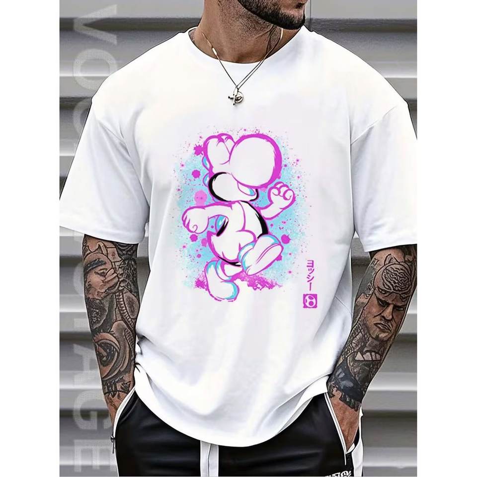 เสื้อยืดผู้ชาย Wu Jianzhan ลาย Yoshi ผ้าฝ้าย 100% 250 GSM ระบายอากาศได้ดี แขนสั้น ทรงปกติ สวมใส่สบาย คอกลม โลโก้ด้านหน้า สีขาว