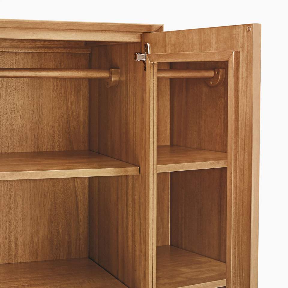 ตู้เสื้อผ้าวูหลานสไตล์กลางศตวรรษ ทำจากไม้สักแท้ พร้อมลิ้นชักด้านล่างและสีน้ำตาลธรรมชาติ