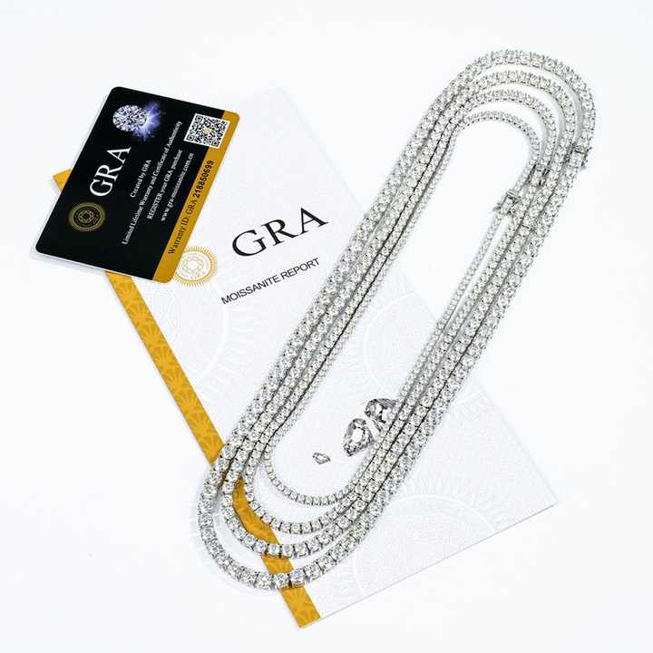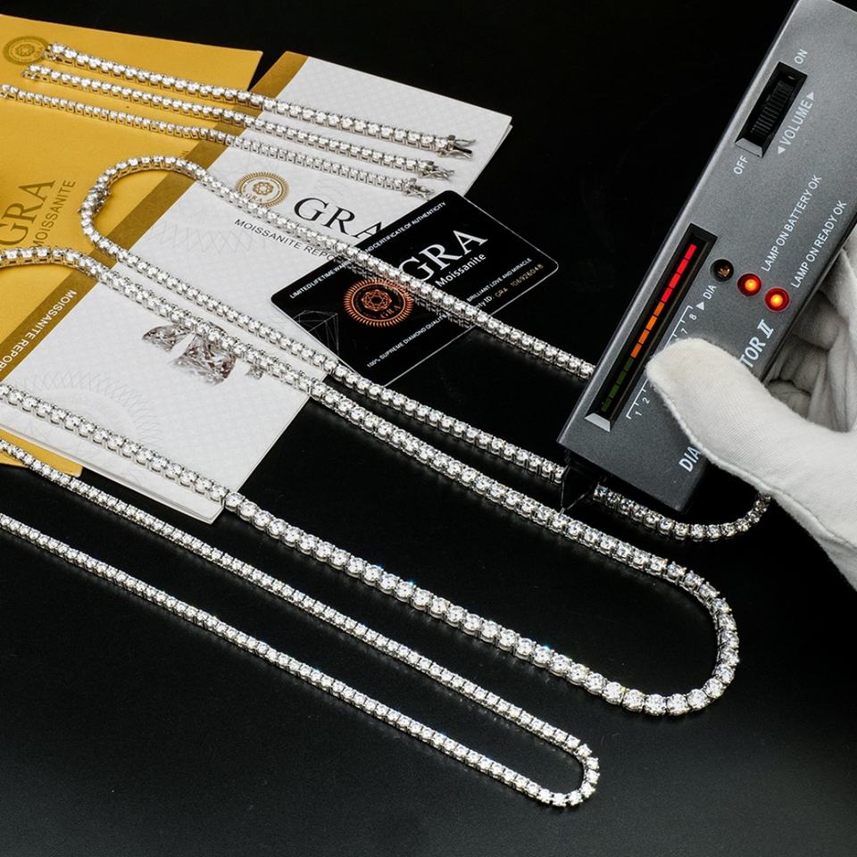 สร้อยคอเทนนิสเงินแท้ 925 ประดับเพชรโมอิสซาไนต์เกรด VVS จากห้องปฏิบัติการ ขนาด 6 มม. 5 มม. 4 มม. 3 มม. 2 มม. จาก Wuzhou Hiphop Jewelry