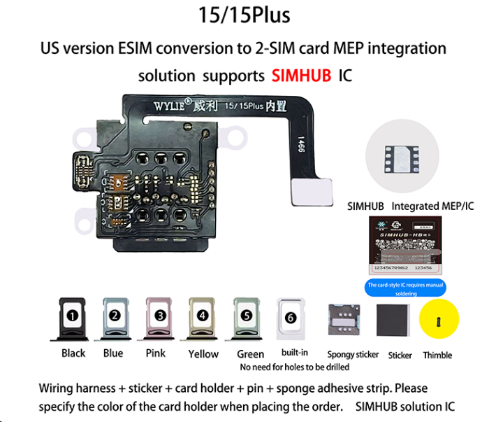แปลง Wylie Sim Flex E-SIM เป็น 2-SIM สำหรับ Upersnow / บัตร DB IC สำหรับ iPhone 15/ 15Plus รุ่น US Wylie Mep