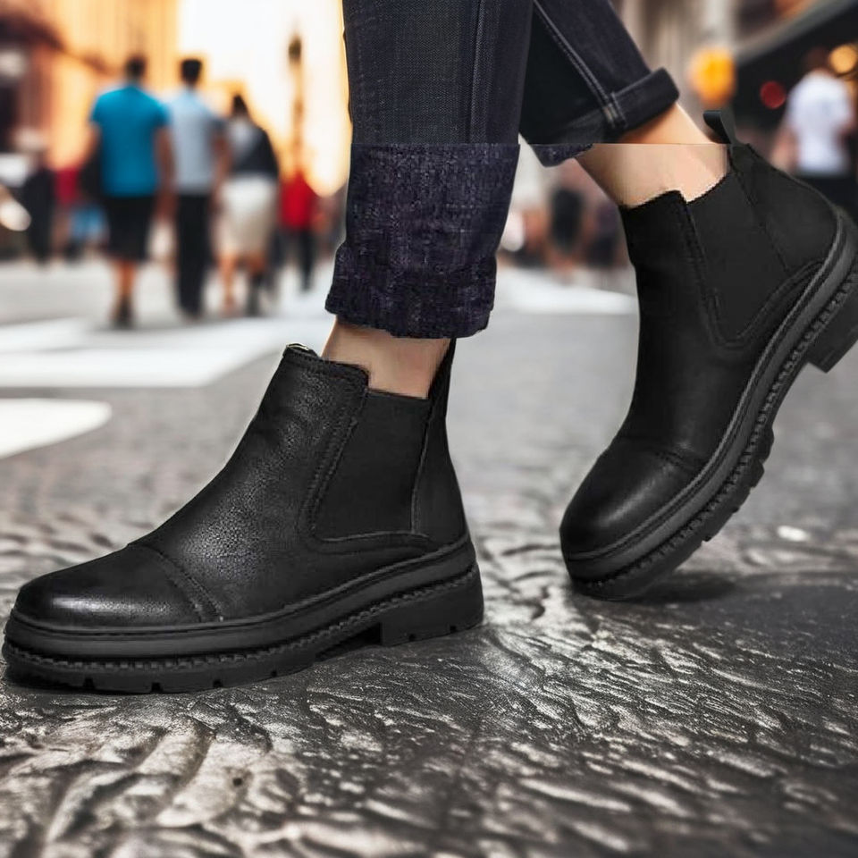 Wypex รองเท้าบูทหุ้มข้อหนังสีดำสไตล์มินิมอล, รองเท้าผู้หญิงสไตล์เรียบง่ายน้ำหนักเบากันลื่นระบายอากาศได้ดี