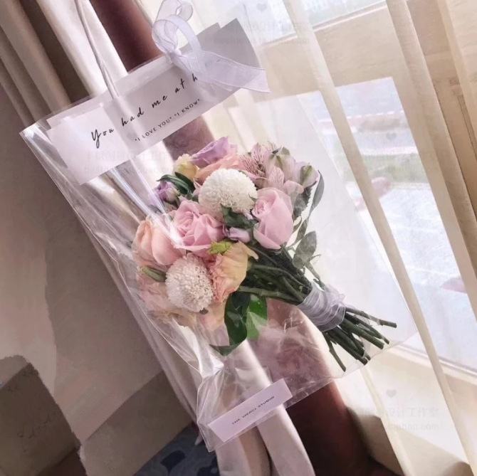 กล่องใส่ดอกไม้แบบขายส่ง X-4001 สไตล์ INS สำหรับช่อดอกไม้เดี่ยว ถุงใส่ของแบบโปร่งใส