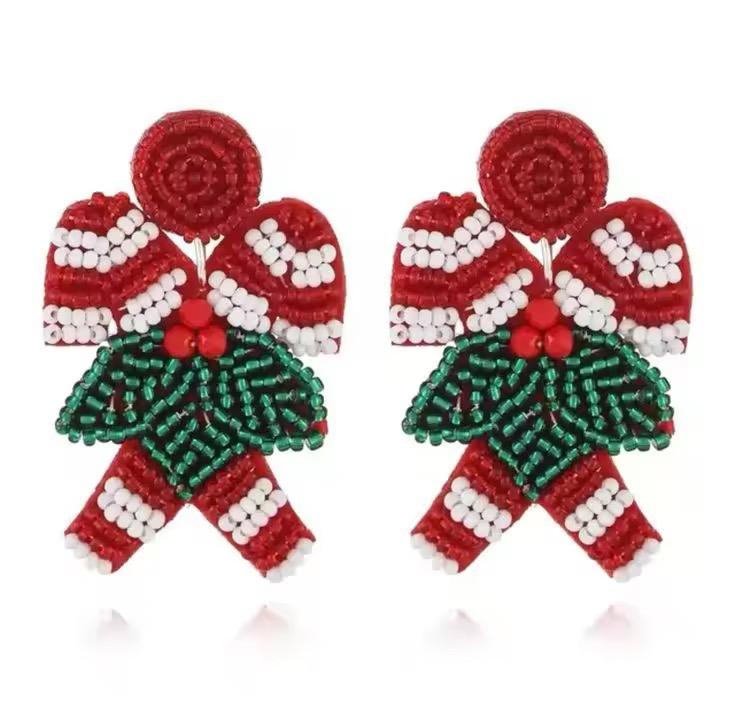 ต่างหูประดับลูกปัดทำมือรูปต้นคริสต์มาส พร้อมพู่ห้อย แฟชั่นสำหรับผู้หญิง สวมใส่ในงานปาร์ตี้ ตกแต่งด้วยลูกปัดเม็ดเล็ก งานปักสไตล์อินเดีย