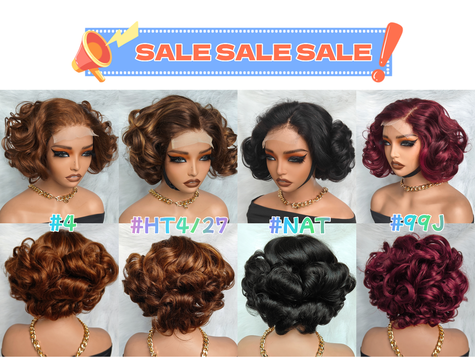 X-TRESS ตัดผมเป็นชั้นๆวิกผมมนุษย์ผมหยิกสั้นผมบ๊อบแบบไม่มีกาวติดลูกไม้4*4วิกผมแท้จากเวียดนาม