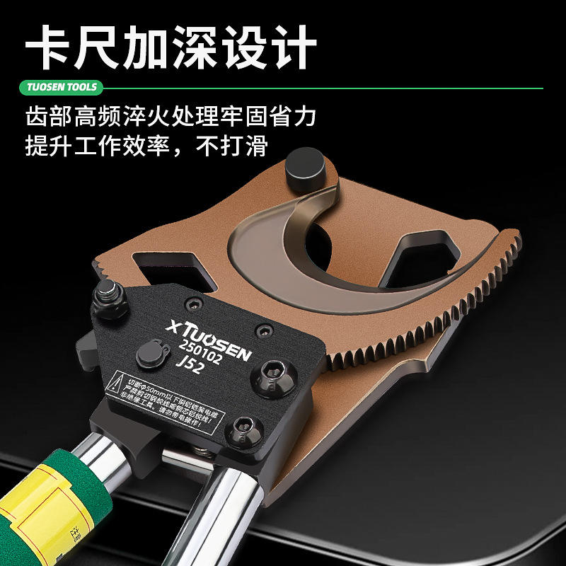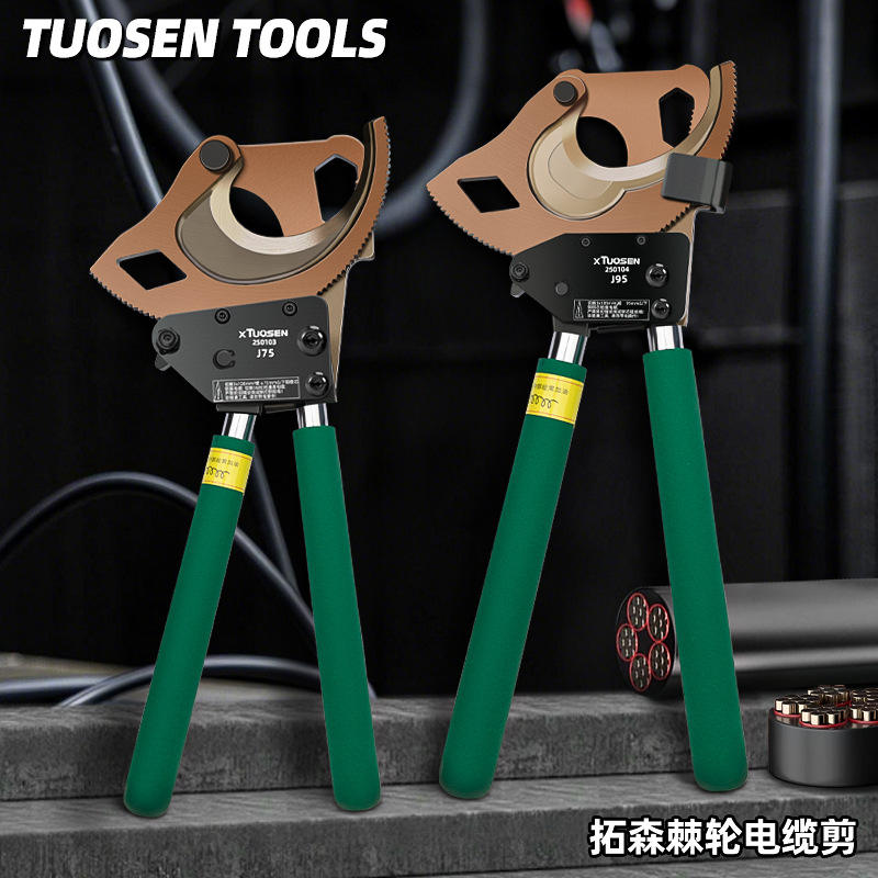 เครื่องตัดสายเคเบิลแบบแมนนวลเอ็กซ์-ทูเซ่น 2003M เหล็กคาร์บอนแบบหยัก เกรดอุตสาหกรรม ด้ามจับสีเขียว กรรไกรอเนกประสงค์