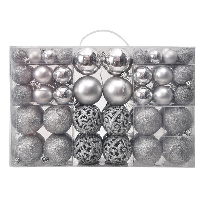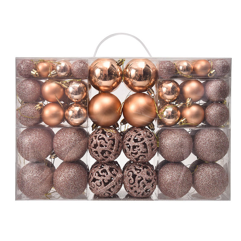 ลูกบอลประดับคริสต์มาสแบบวินเทจ 100 ชิ้น ขนาดผสม ชุดลูกบอลคริสต์มาสแบบมีกลิตเตอร์