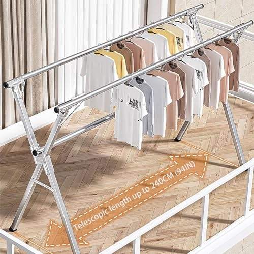 ราวแขวนผ้ารูปเหล็กชุบสังกะสี, ราวตากเสื้อผ้ายืดได้ยาว1.6ม./2ม./2.4ม. สำหรับใช้ในบ้านระเบียงกลางแจ้ง