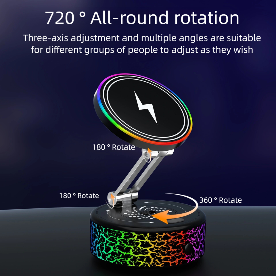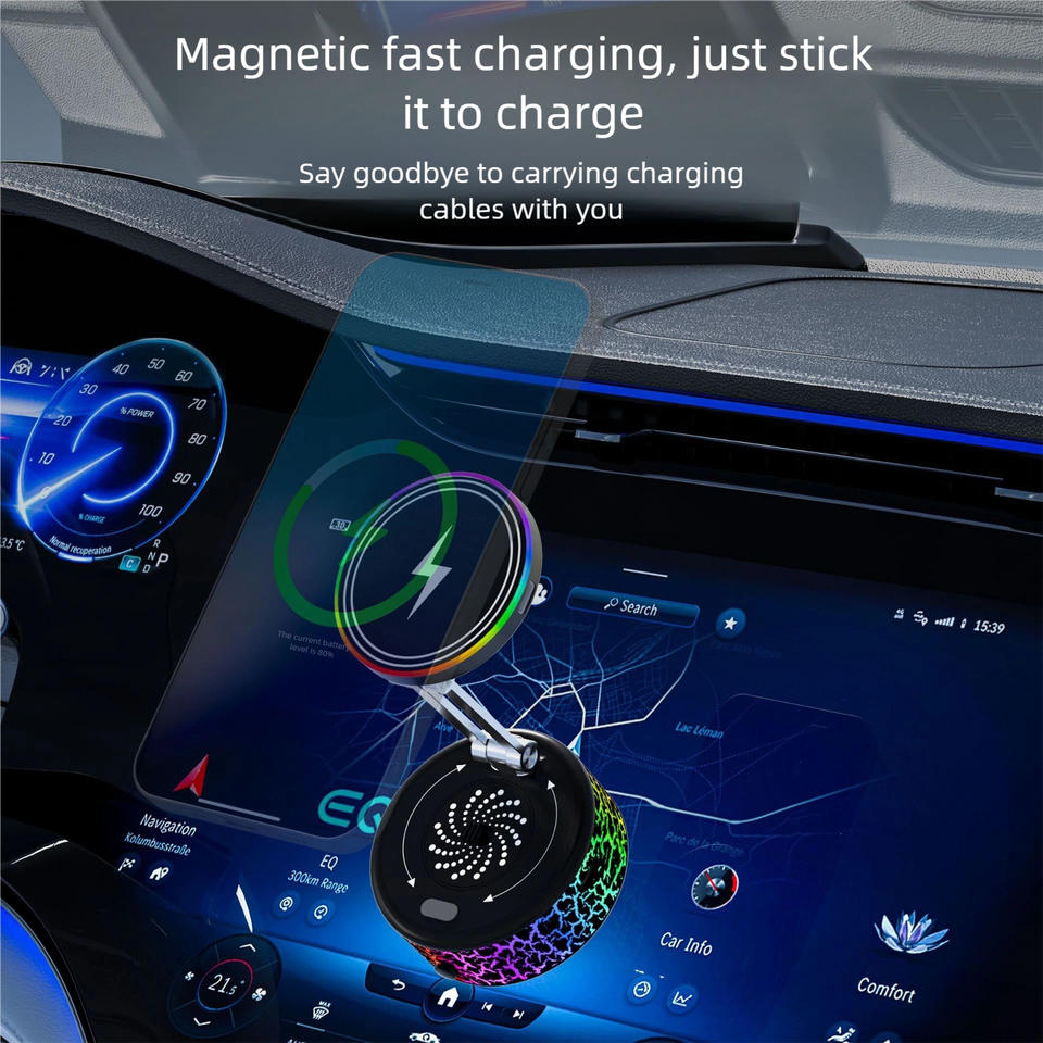 แท่นชาร์จไร้สายแม่เหล็กในรถยนต์ X12-C | รุ่นเรืองแสงชาร์จเร็ว 15W | 720 ° การหมุนแบบเต็มรอบ | แรงแม่เหล็กยึดเกาะสูง 1.5 กก.